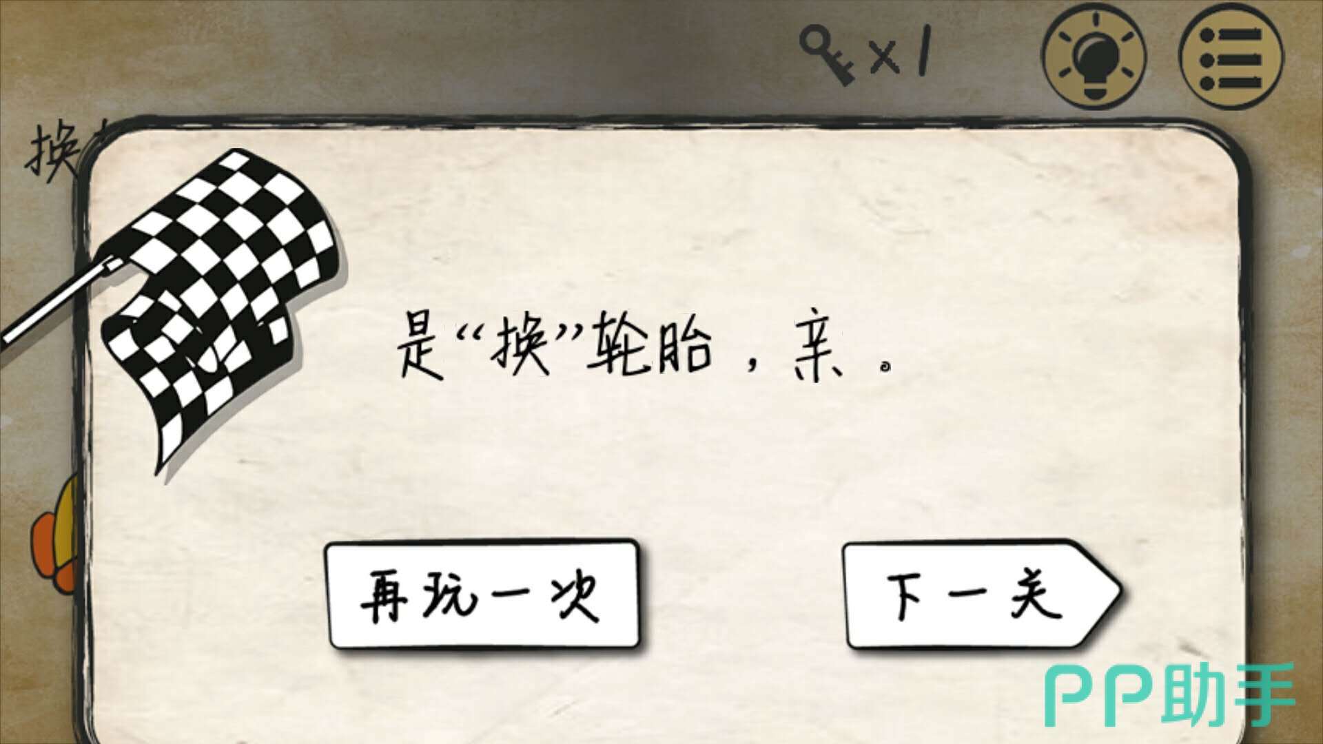 这一关很简单,只要把车上的轮胎移出来,再把新的轮胎安进去,就能顺利通关啦!