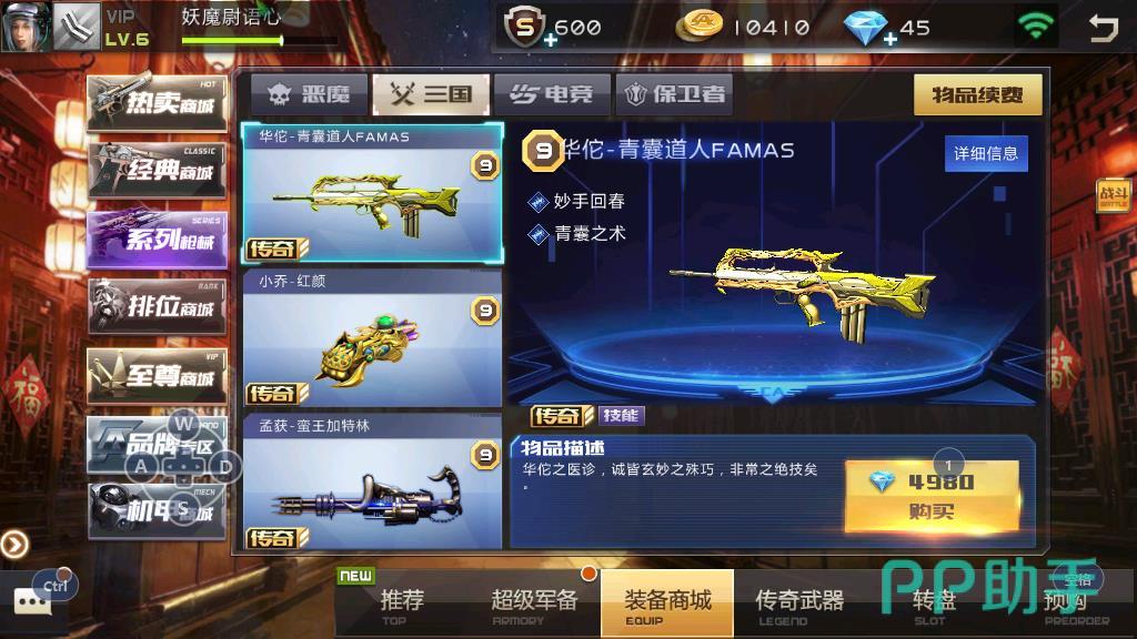 在获得方式上,第一个比较直接的途径就是在商城中进行购买。玩家点击商城按钮进入之后,在众多的分类中选择系列枪械。然后在系列枪械界面的上方点击三国,在这里就可以看到当前出售的几把三国系列武器了。在每个阶段系统会随机选择八个武器出售,如果没有卧龙的话,玩家需要等待下次的刷新再来查看。
