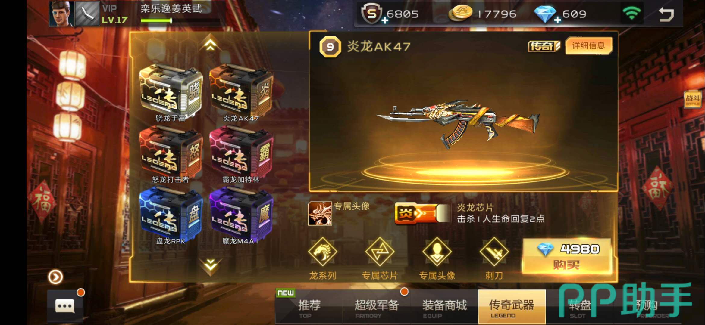 所以说只要我们舍得下本,全部的炎龙套装包括武器都可以获得,相比其他游戏动辄数十次都抽不到好东西相比,全民枪战2的转盘设计的非常良心,不需要氪金就能获得超级装备。而且钻石在游戏内活动就可以获得,入伙快速获得钻石在小编的之前攻略中有写到,大家可以去biubiu加速器全民枪战2攻略专区查看,这里不再赘述。