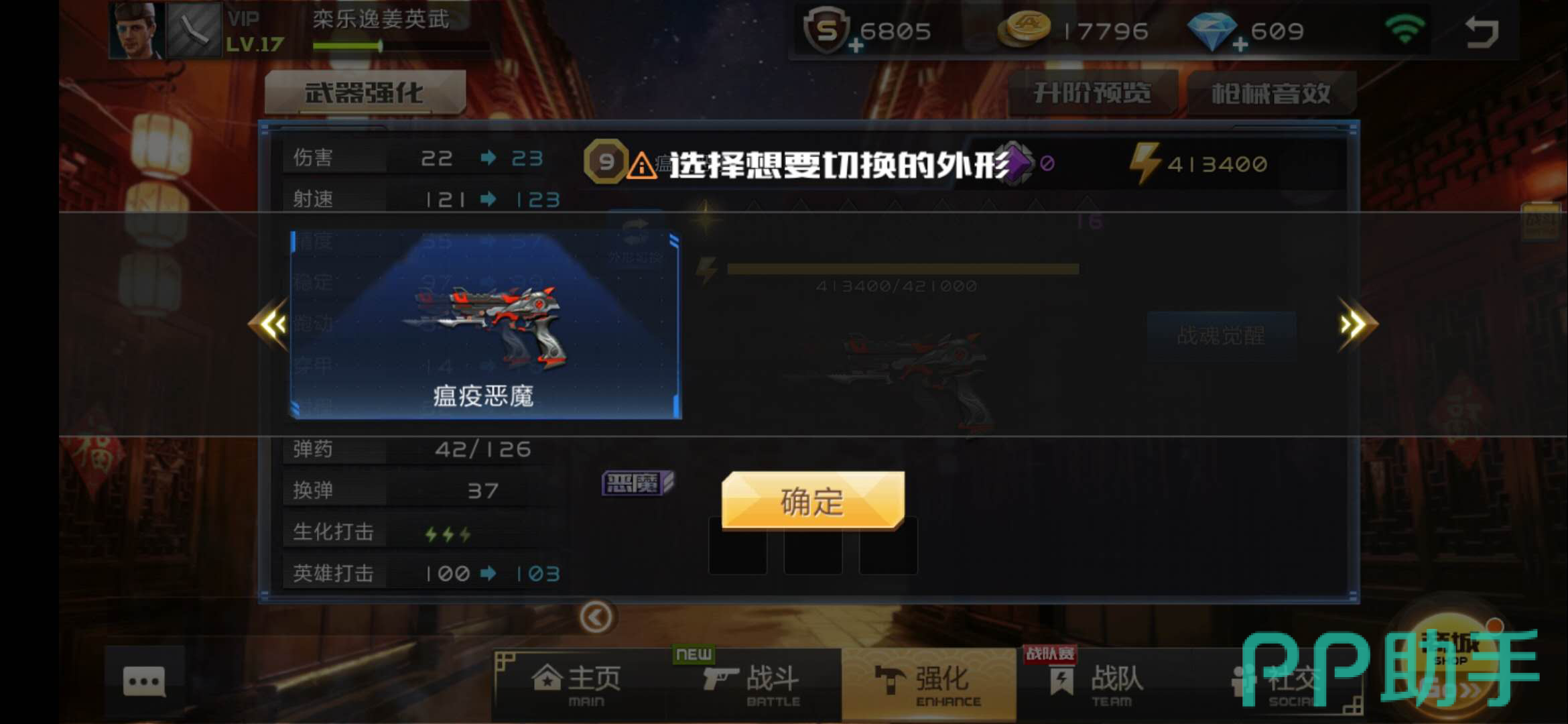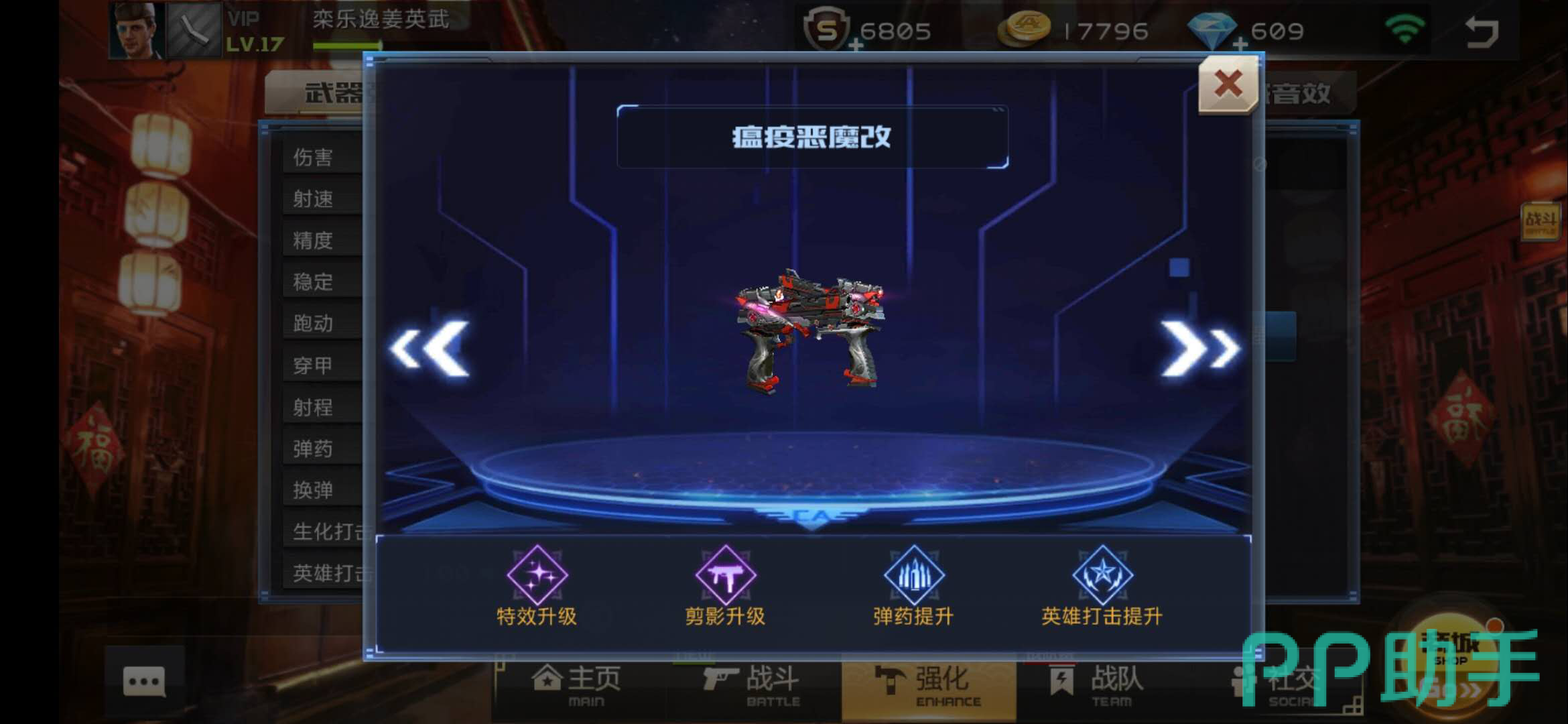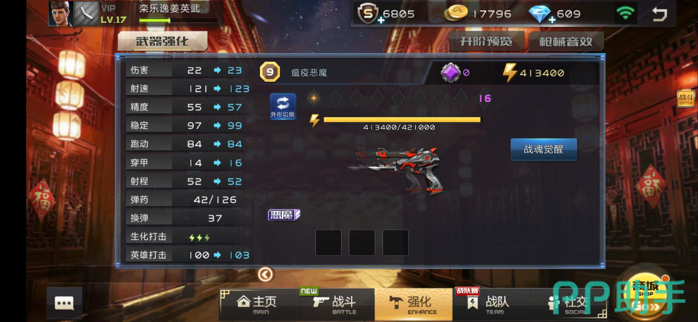 瘟疫恶魔进行强化和改造需要用到枪械碎片和强化点,强化点需要在强化点制造机和超级军备中获得,其升阶的途径是瘟疫恶魔—瘟疫恶魔改—瘟疫恶魔改-36—瘟疫恶魔改37—瘟疫恶魔改38,等阶越高需要的强化点和枪械碎片就越多,所以要想获得一把真正的神器,瘟疫恶魔的随机礼包还是得多买。