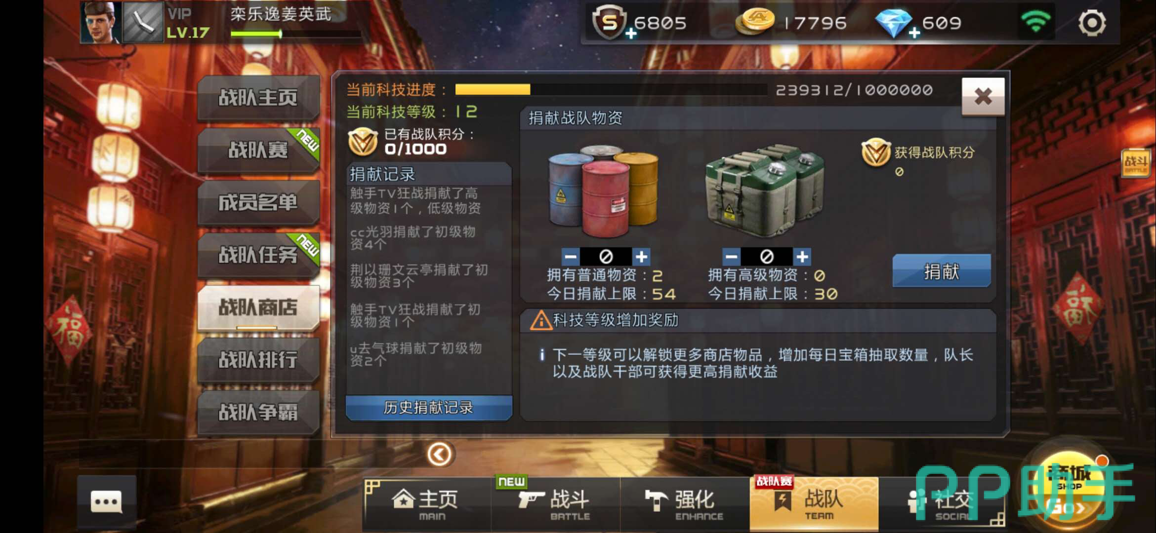 需要注意的是如果在战队中担任职务的话,捐献物资可以获得更高的收益,所以一定要努力在战队中混个一官半职,这样收益更大。而且捐献的物资还能提高战队科技值,科技值越高,成员获得的好处也就越多,可以说是一举两得。