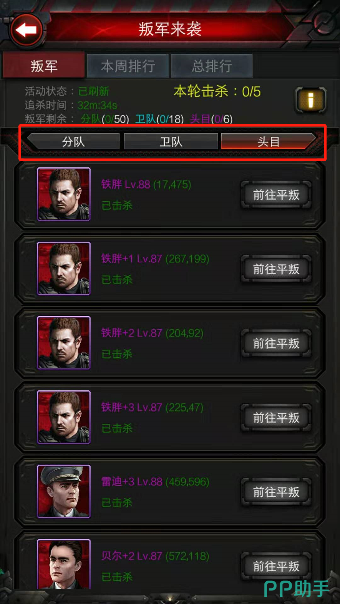 叛军等级:由全服前一百的玩家的等级来决定。