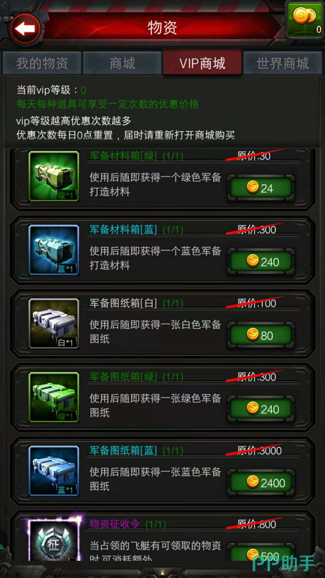 在游戏中的VIP商城中,也是可以获取配件的,购买军备材料箱可以获取蓝色或者绿色配件。