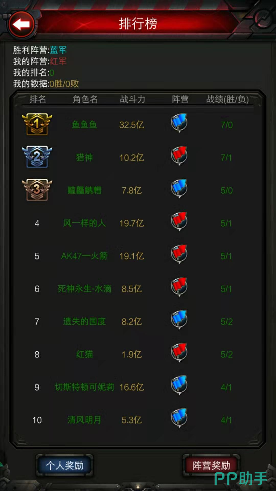 战斗胜利的阵营可以获得功勋奖励,战斗失败的阵营会获得少量功勋奖励,战斗胜利的阵营可以获得BUFF奖励,个人胜场排行可以获得排行奖励。