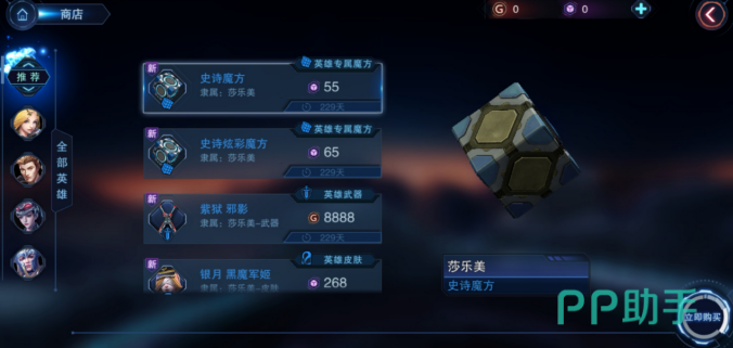 在商店里面,除了可以买到英雄之外,皮肤也是可以买到的,不同的英雄武器有不同的攻击特效,打击起来的手感也不尽相同,可以看情况选择自己喜欢的武器进行购买。