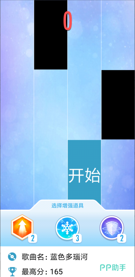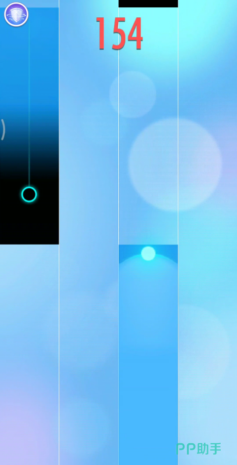 当你点按单黑块时,要依据出现次序来,假如没点中黑块,仅仅是点在其下方的空白位置,系统也会判定你点到,会增加相应分值。这个限定的好处在于我们按两个搭配黑块时,可以快速从两列中间滑行过去,尤其适合高节奏的曲风。
