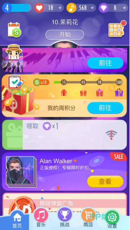 在主页有各种各样的任务等着你来完成,同时也有签到和活动。首页主要是提供这类活动和任务的一个地方,同时它会告诉你上次你玩的是哪首歌。