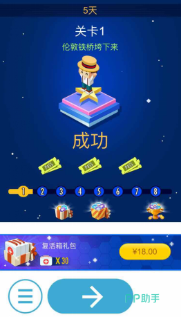 接着还是首页的5天闯关礼包,只要闯关就能获取到宝箱,这里的开宝箱条件就是“获取”这一行为了,关卡也都不难,但是不能使用道具,所以请各位闯关一定不要被其他琐事拖累导致失败,当然失败是可以重来的。