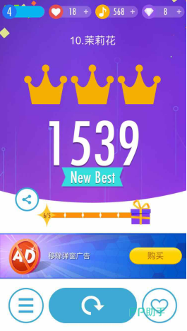 最后友情提示,每首歌曲只要玩到皇冠关卡,就有机会在游戏中获取宝箱,不过需要你分神额外去点击,当然这对你皇冠的收集有所影响。