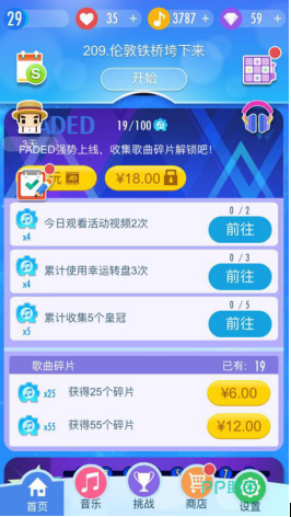 某些曲子不会随着等级的提升而开放,这个时候就需要大家积累碎片来解锁了。4个碎片可以组成一张专辑,所有的碎片凑齐后就可以解锁该首音乐了。