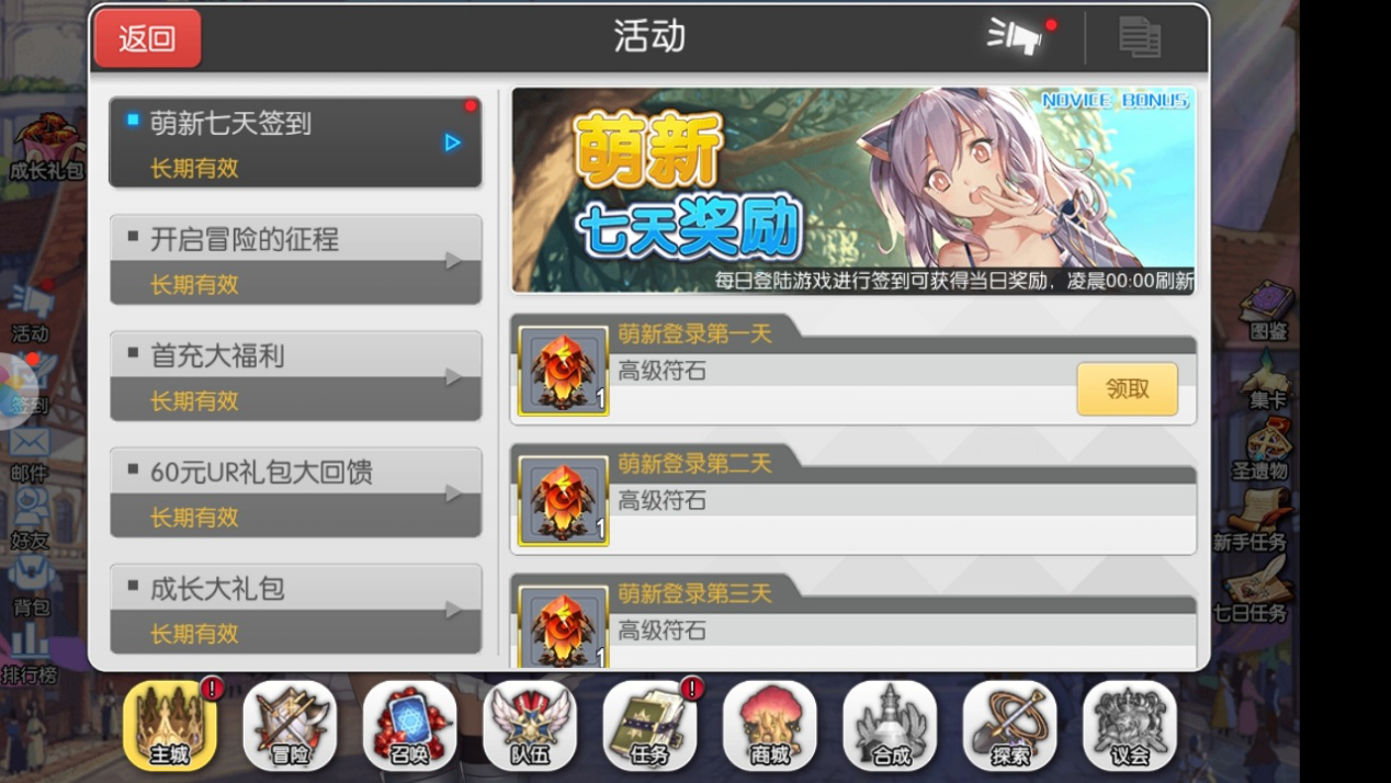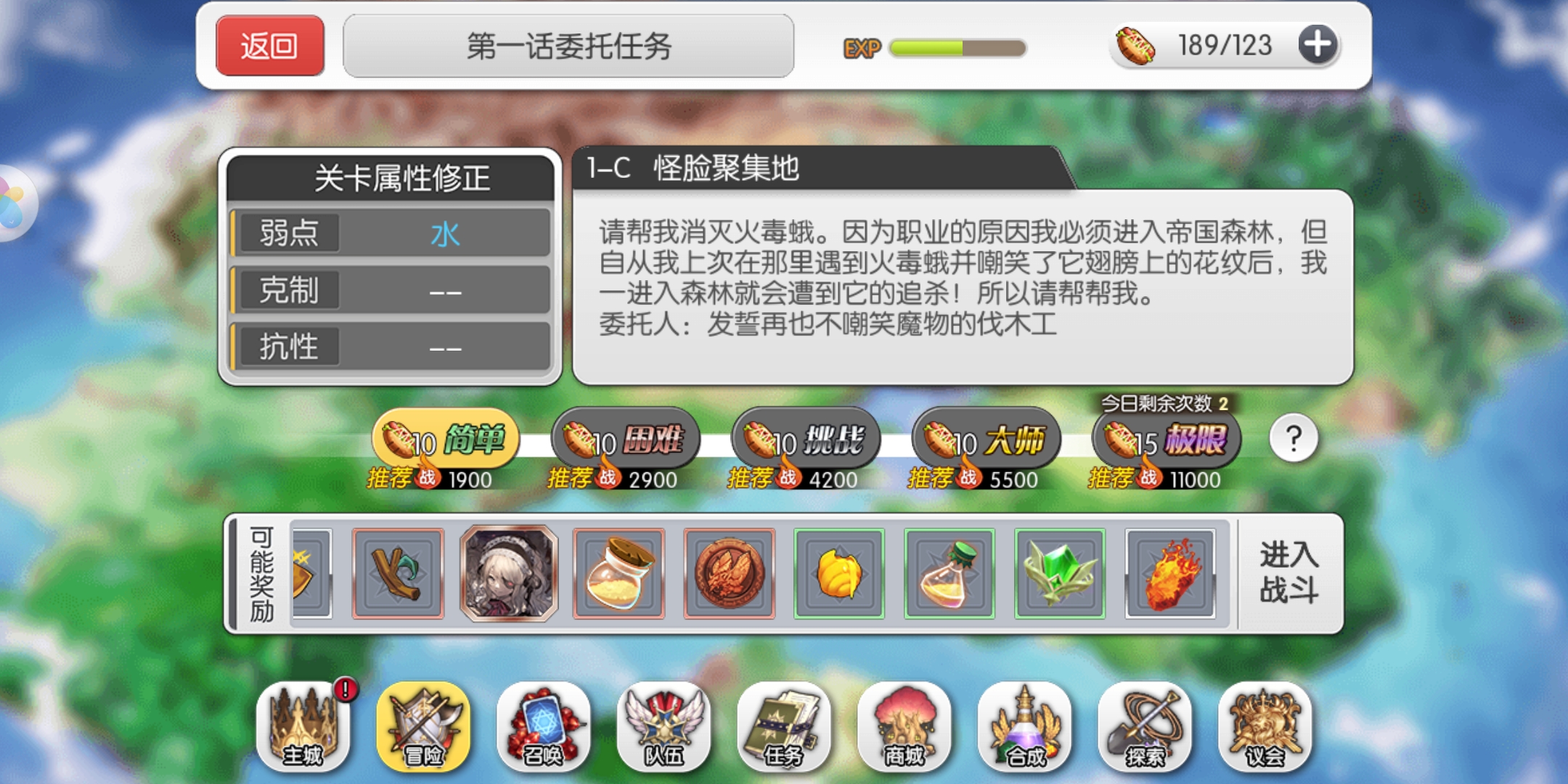 二、 进入冒险模式。点击游戏主界面下方主城后的冒险按钮。点击这个我们可以进入到冒险模式。