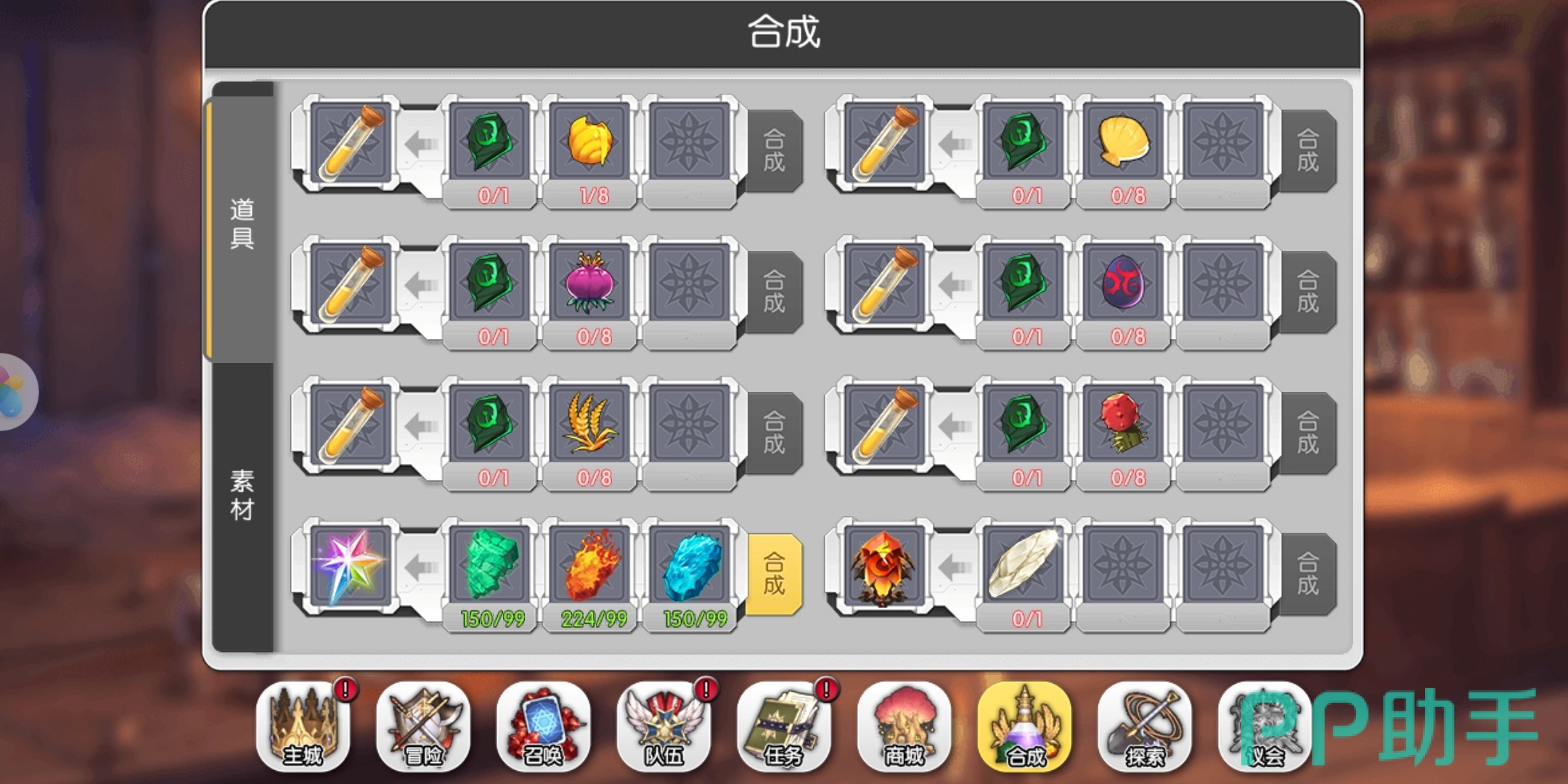 上文说到,元素是拿来制作魔卡的。游戏的主页面打开合成的这个标志,这时就会出现合成的一些东西。比如会合成小型药剂,高级石符以及以太。