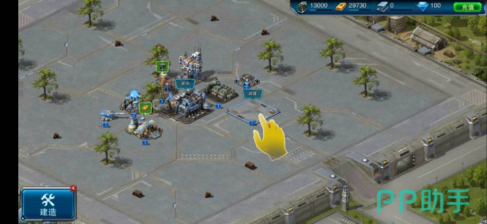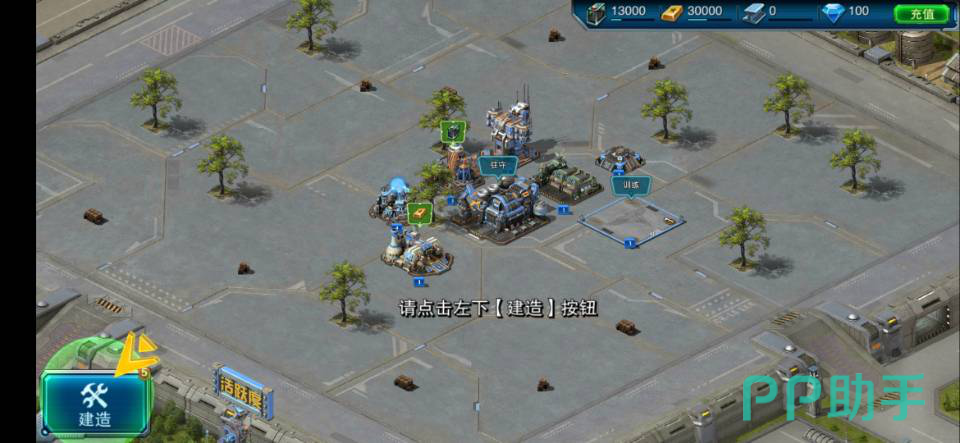 2.完成一场防御战后,我们需要进行基地的建造,首先会需要造防御的武器炮,在左下方的建造按钮进行,接着是需要我们在兵营中招募士兵。