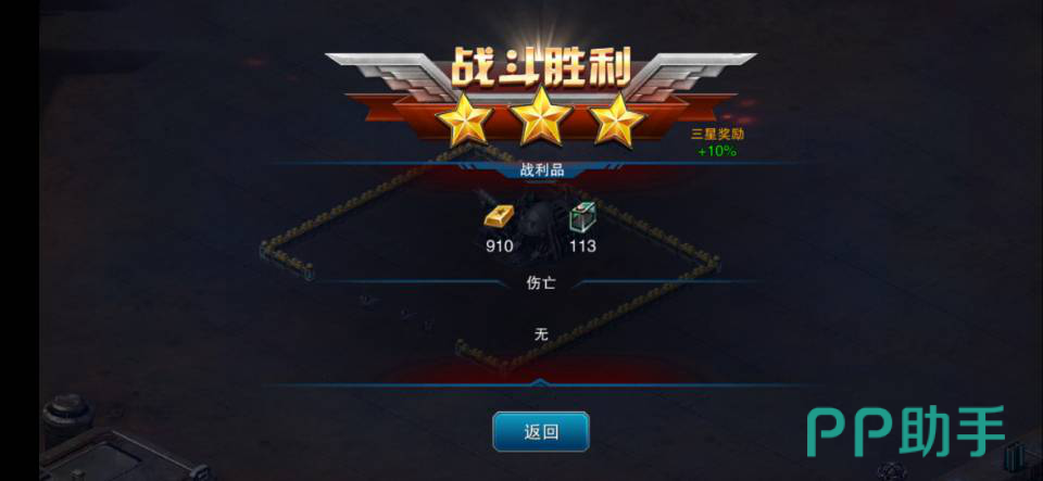 4.只需要派出少量的小兵就可以了,会获得一场三星的战斗胜利,同时有额外的加成,可以看到这次我们并无伤亡,但是以后是会有一定的兵力消耗的。