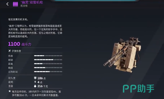 玩家可以搭配幽灵双管机枪,这一个机枪会拥有较好的效果,旋转的越多则意味着就可以形成更大的伤害。如果可以搭配在一起就可以形成巨额的伤害,虽然消耗比较多。