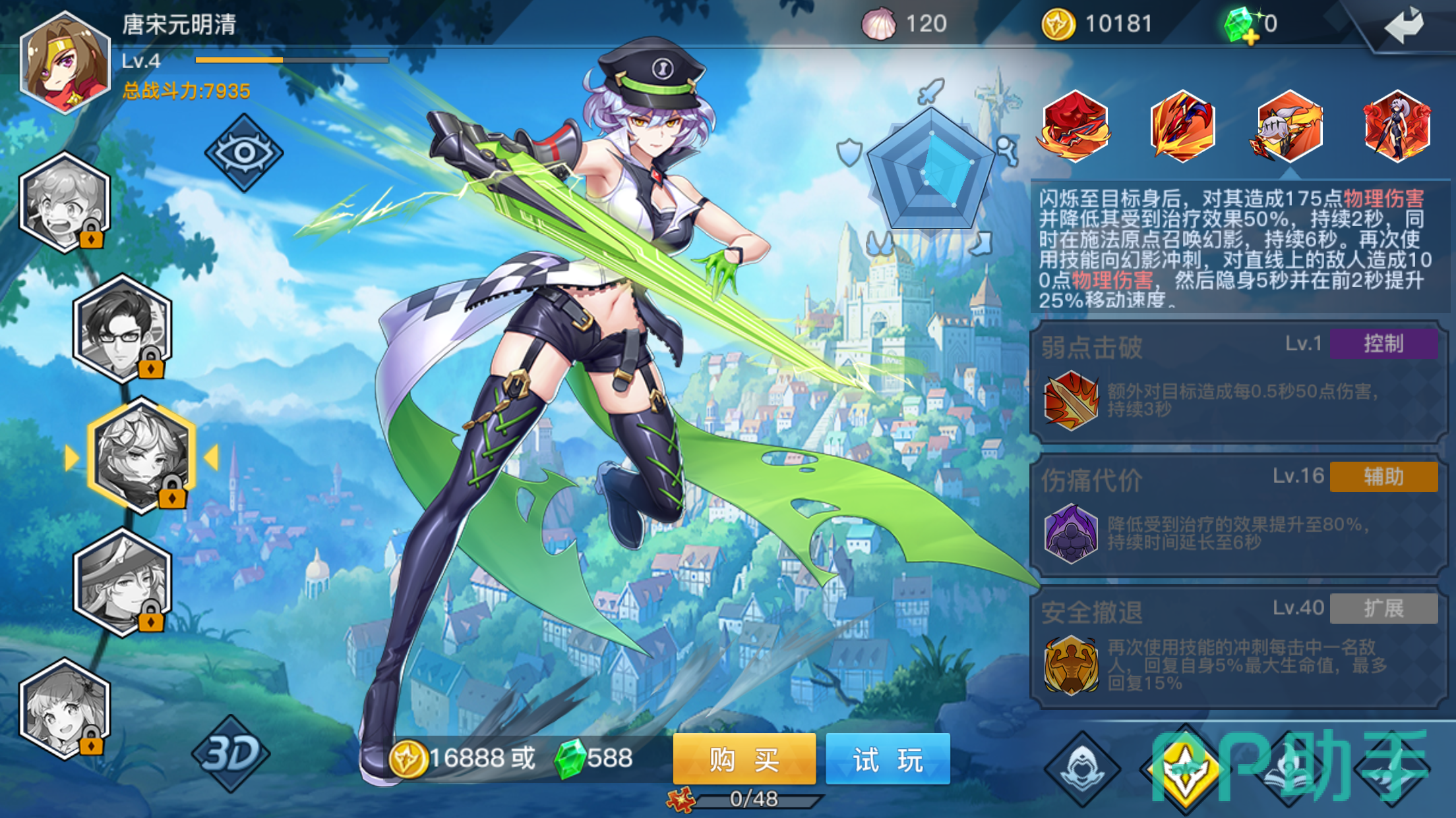 2技能:选择16级的安全翻滚,位移之后增加移动速度并闪避敌人的攻击,这样无论是在追击敌人或者是在逃跑的时候都能够大大增强蕾拉的灵活度!提高整体战斗力!
