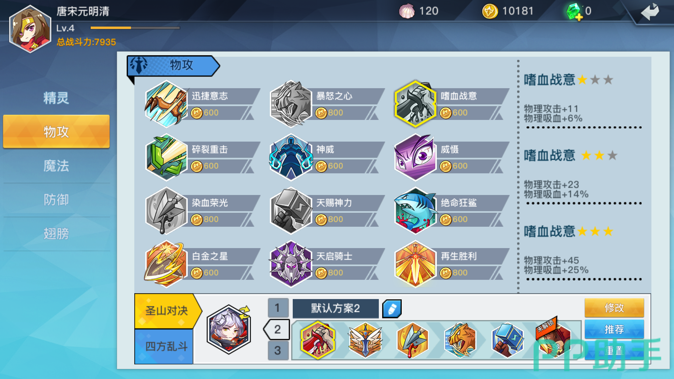 并且在切换完精灵之后,还可以在备战中选择精灵的天赋。一般来说,每一位精灵都有着3种属性加成的天赋可以供玩家选择,这样一来无论玩家选择的英雄时法师还是战士,都可以在使用精灵技能的同时增加额外的英雄属性!提升战斗力!