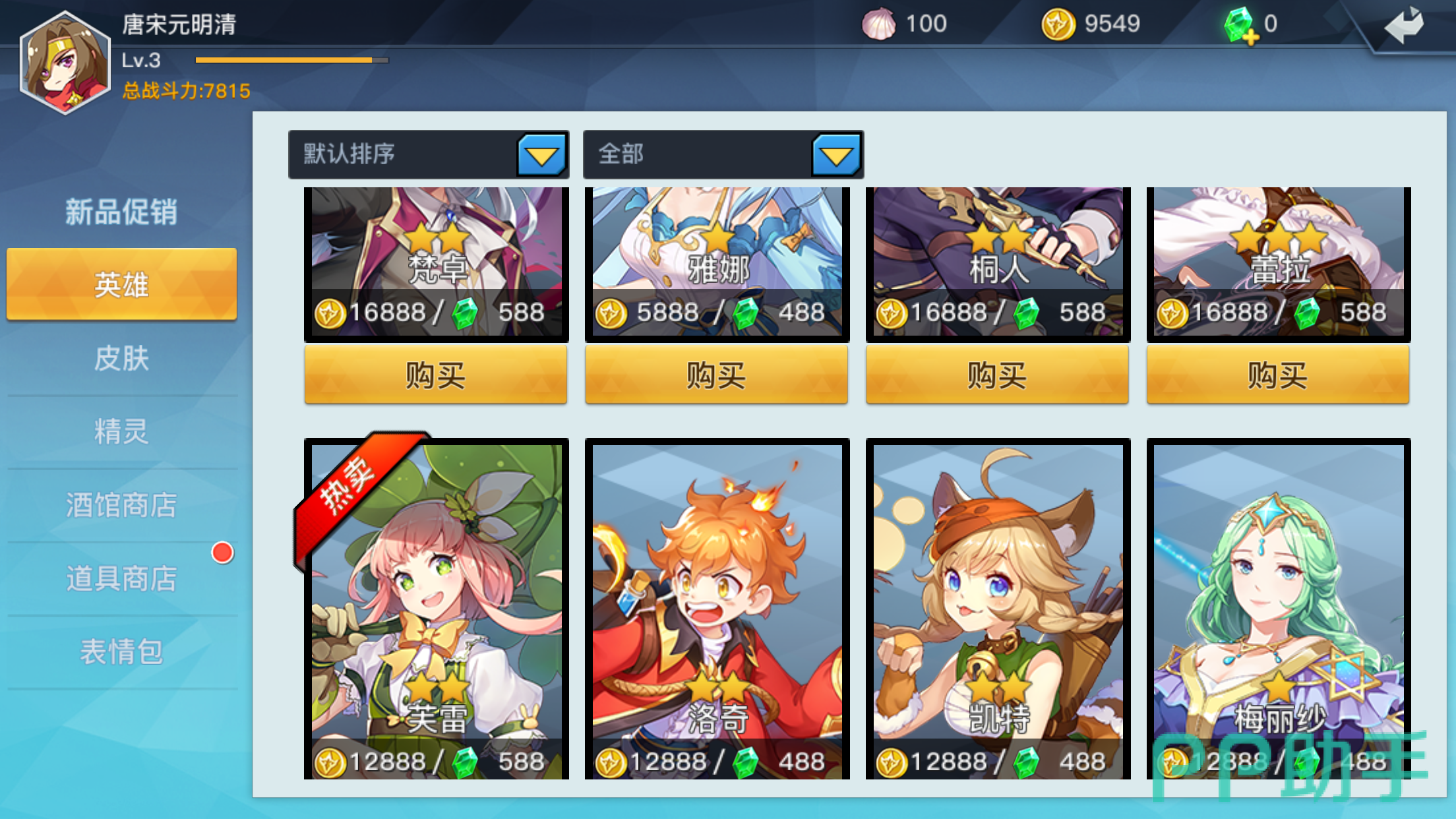 不同的英雄适合不同的天赋,以及搭配不同种类的精灵。道具是不需要进行购买的,而英雄和精灵有一些可以通过任务免费获得,剩下的就需要玩家通过消耗金币在商城中购买了!