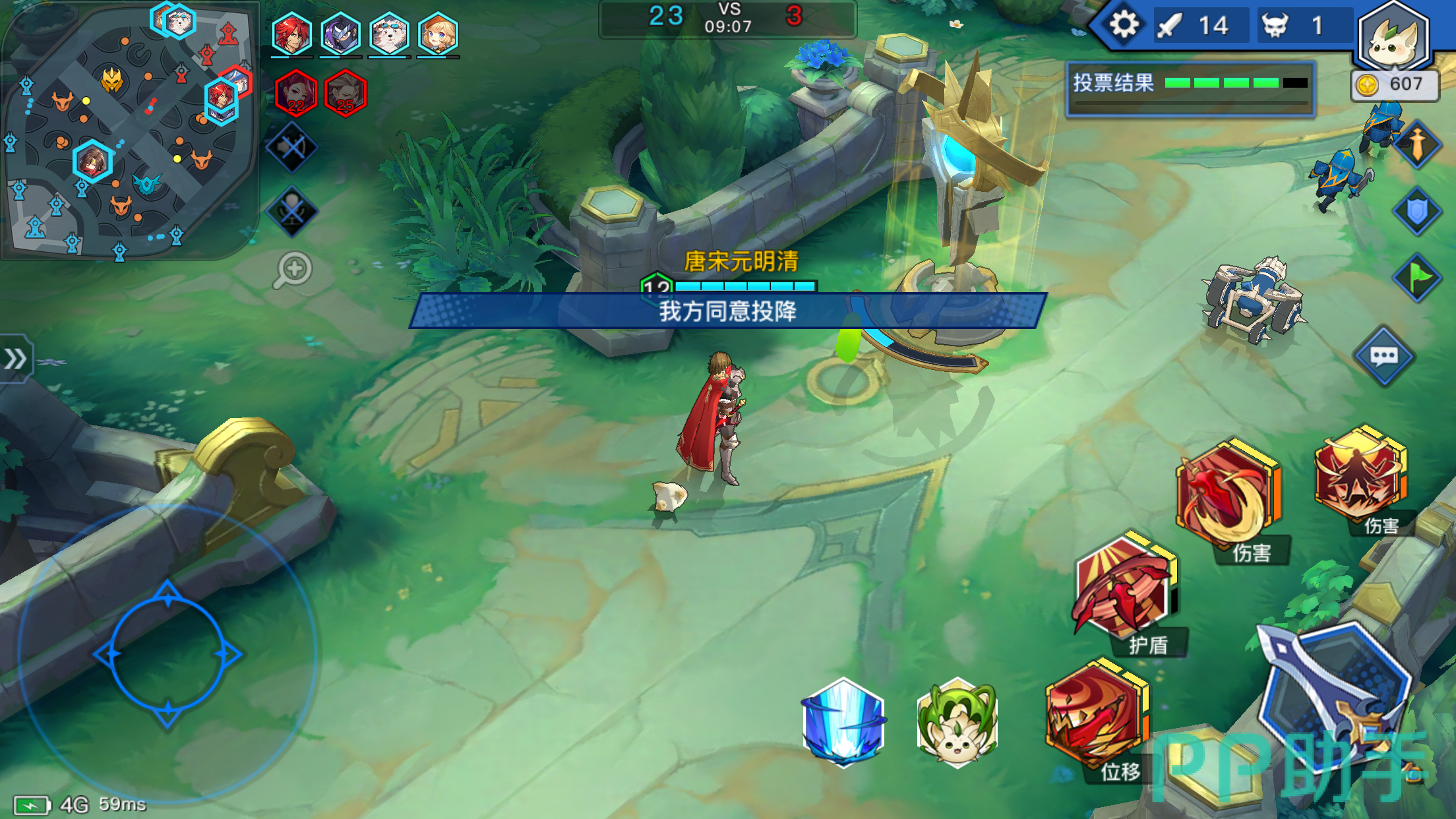 而当玩家选择投降后,屏幕的右上方会出现一个投票按钮。只有出现4票同意后才能够成功投降。或者当有队友掉线是,需要出现3票同意才能完成投降,反之则无法投降。并且每投降一次后,都需要过一段时间才能够再次发起投降!