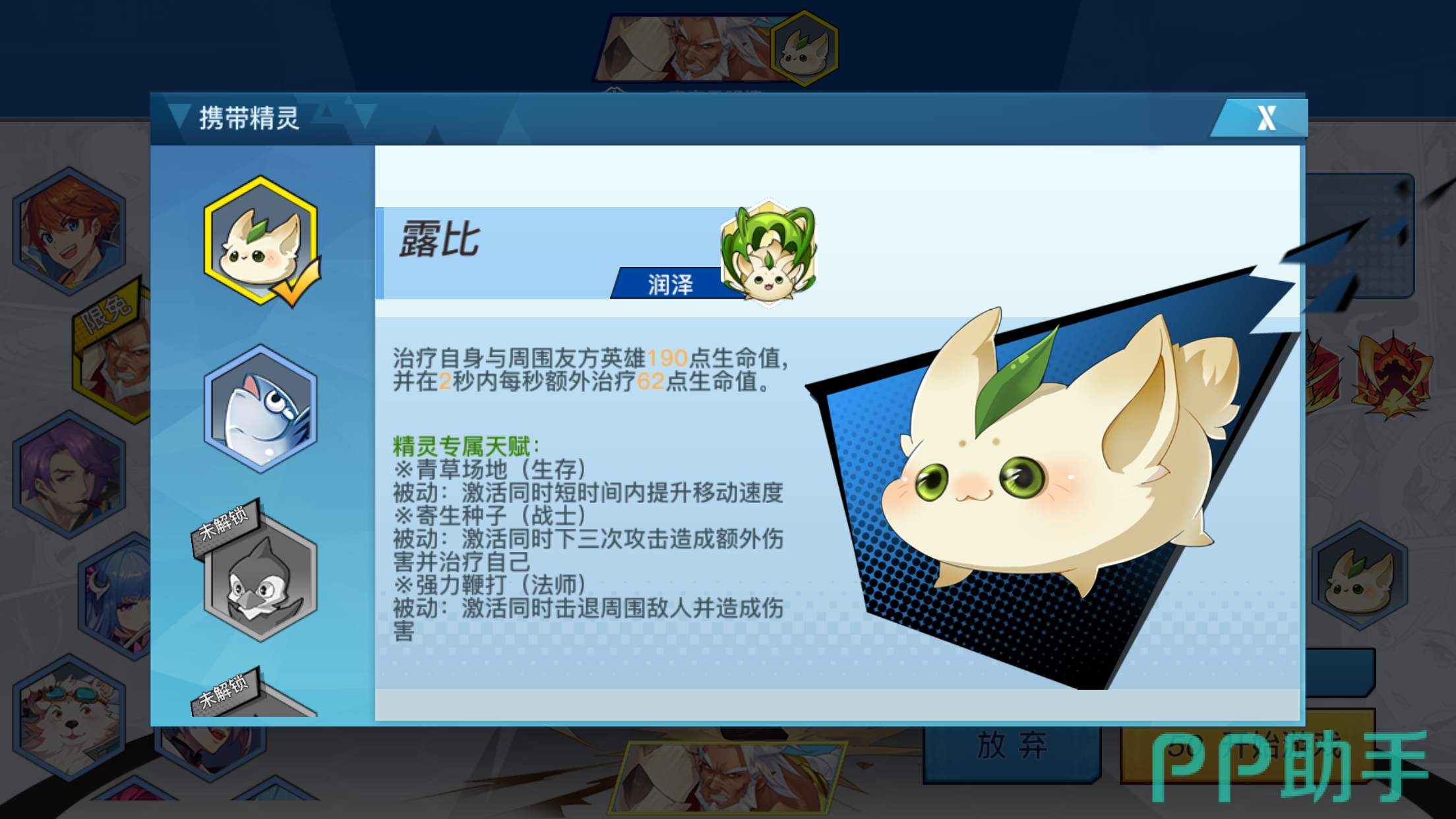 另外,在匹配玩队友,选择英雄的时候也可以进行精灵的切换。这时,玩家可以通过点击精灵的头像,进入精灵切换的页面,就可以选择本场想要携带的精灵了!