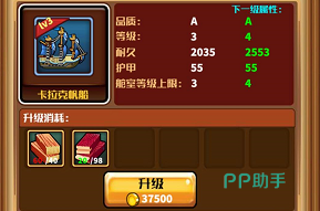 升级的素材前期可以通过在海洋上捡【木箱】和【宝箱】获取,或者是对抗一些比较低级的海盗,战斗胜利的话可以获得一定的素材奖励。后期会需要钢板,海怪牙齿等一些比较稀有的素材,玩家可以通过【投资】或者是【击杀海怪】来获得。