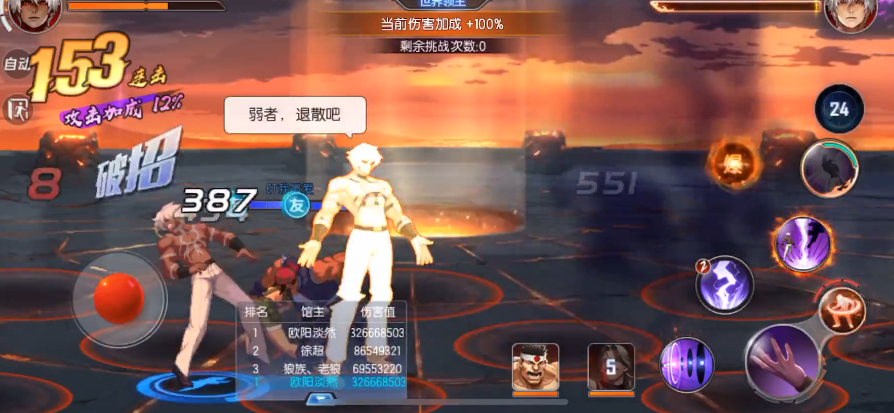 只是用小技能把她们全部在空中连死,然后在boss刚刚出现的时候,直接曝气使用超必杀朝着boss脸上打,打完之后,节省技能等待boss的下一次女兵召唤,如此反复,只要你的战斗力足够,一般四次时间就可以通关了。