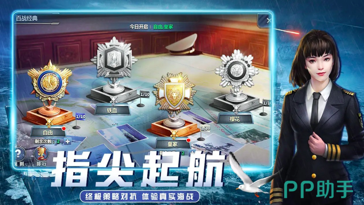 热血的跨服挑战赛,让你体验跨洋追击,称霸四海的欢乐,从普通战役到铁血之争,各种有趣的海上大战,指尖触发,建立起自己的超级舰队,征服四海,美女下属陪你完成更多策略开拓。8个主题挑战玩法,尽显指挥才能,体验大洋远征、深渊挑战、海上夺宝、百战经典等多个玩法系列,让玩家体验真正的快速出击。