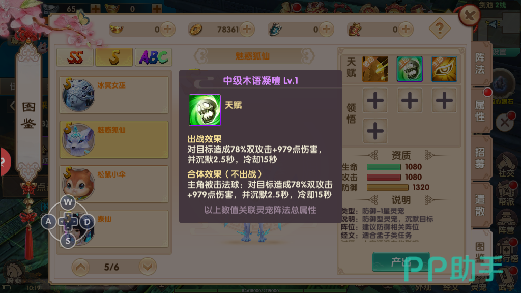 本次要为大家带来的是克制毒龙的一个灵宠,它就是S级的魅惑狐仙。作为一个S级的灵宠狐仙有着比较高的属性加成,而且作为一只防御型的灵宠,在本次面对毒龙的时候有很好的克制效果。