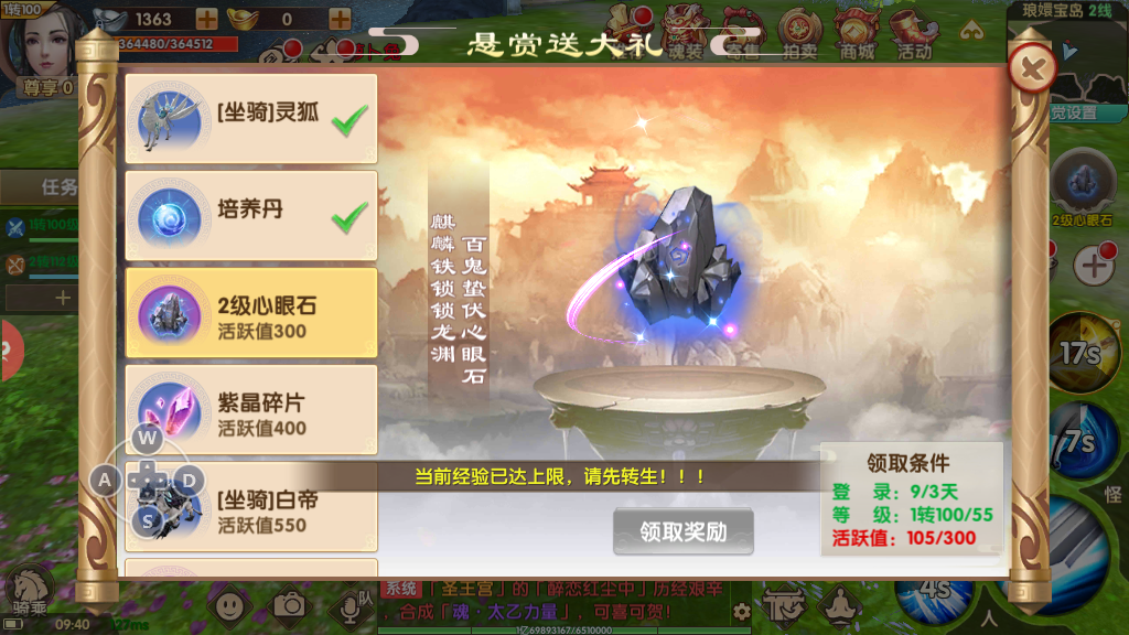 最后就是转生最重要的一个道具“长生诀”的收集,在游戏中玩家需要收集足够九个长生诀残片才能够合成完成的长生诀。而想要获得这些残片玩家就需要挑战“长生碑”这个活动,在每个关卡的第十层考验中,玩家战胜BOSS之后就能够获得对应的碎片。