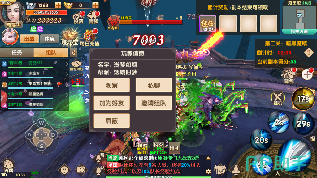 其次技能“木语凝噎”能够在造成伤害的同时附加两秒的沉默效果,对于毒龙这种技能使用比较频繁的怪物是非常大的一个打击。只要玩家在战斗的过程中把握好这个技能的使用时机,就能够有效的打断毒龙的输出技能,抓住这个输出的空挡能够给毒龙造成大量的伤害。本次战斗有了狐仙的帮助,玩家能够很轻松的战胜毒龙。以上就是本次所有内容介绍。