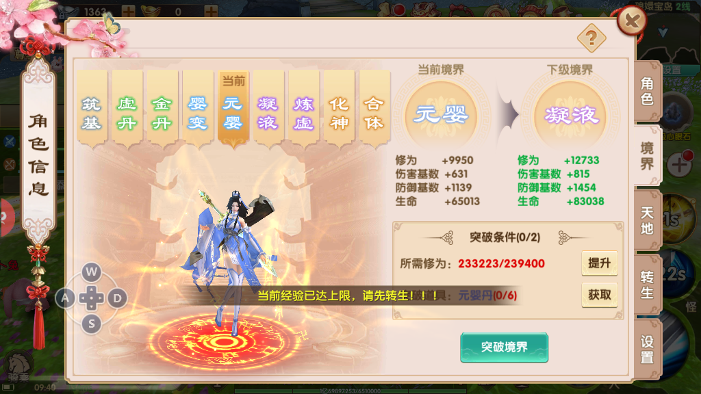 想要收集足够九个残片需要玩家在活动中通关九个石碑的考验才行,这对于玩家的修为和装备是有比较高的要求的。完成以上的条件之后,点击角色的头像找到转生界面,点击转生就能够完成等级的突破和属性加成了。