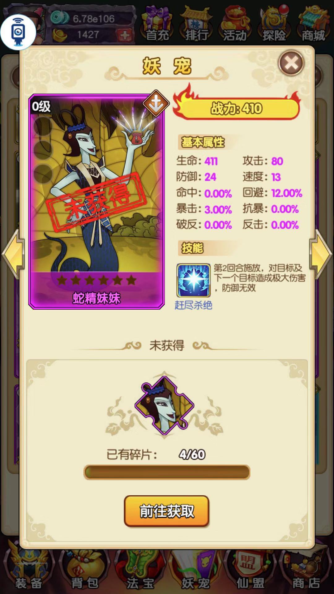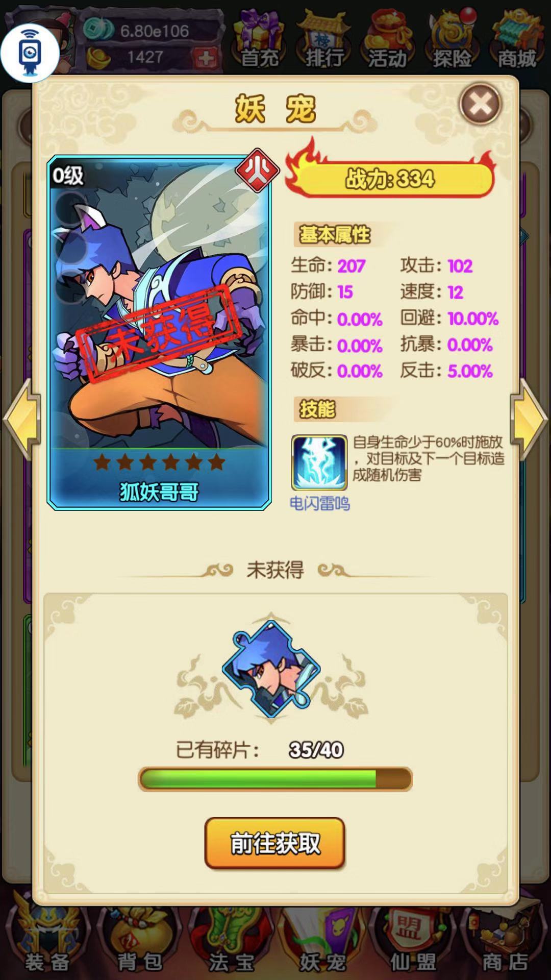 氪金玩家获得妖宠的方法:既然是氪金玩家突出的就是一个高效率,不在意钱,要拿就拿整卡,拿几个碎片像什么玩意!