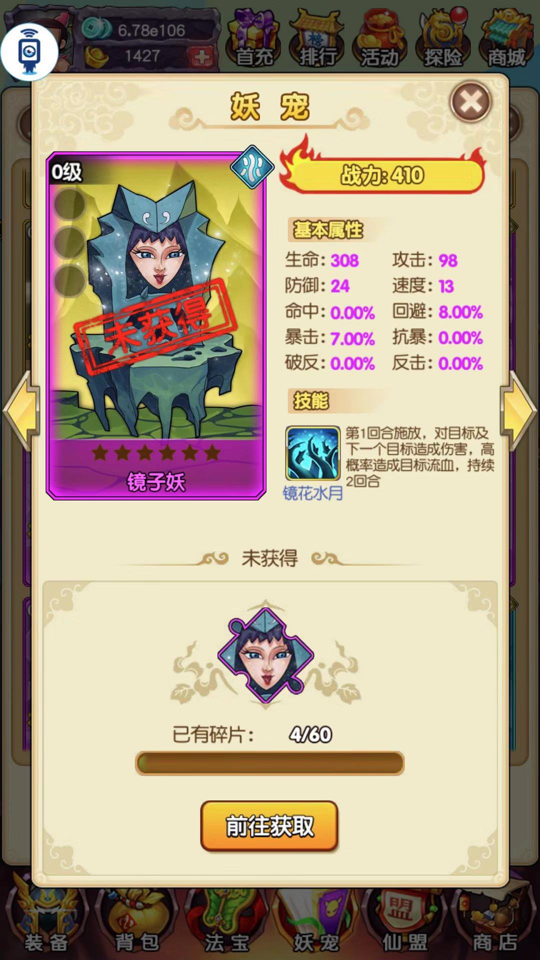 妖宠:最好的方法就是在妖镜祈愿里面获得妖宠,普通的抽奖每天可以抽3次,最高获得紫色的妖宠整卡,大概率都是获得紫宠的碎片,不过也比去商店买要便宜多了,唯一的不足就是这种抽妖宠的方法没有指定性,可能抽不出玩家想要的妖宠,结果就是手上的妖宠碎片零零碎碎的。