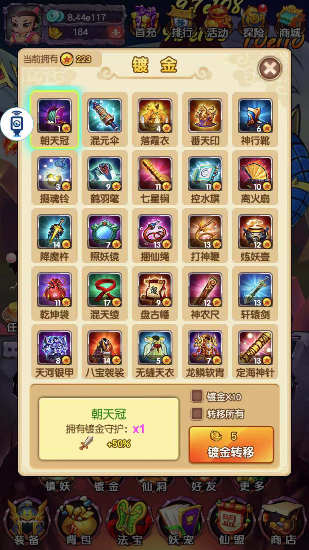 2.所以小编建议玩家镀金的时候从最弱的装备开始进行转移,就是将镀金球的位置慢慢的往更好的装备那里移动,最好全部移动到定海神针这里。