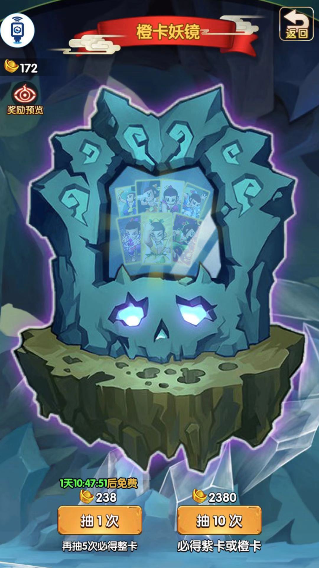 1.直接在妖镜祈愿抽1680元宝的奖池,每抽10次必然获得一个妖宠,运气好的话能得到几个妖宠,还有小概率直接抽到橙色卡,1680元宝其实就是168元,但是根据官方推出的很多活动玩家都可以得到百分之50左右的元宝返回,所以氪金大佬可以把168元花出1680的感觉。