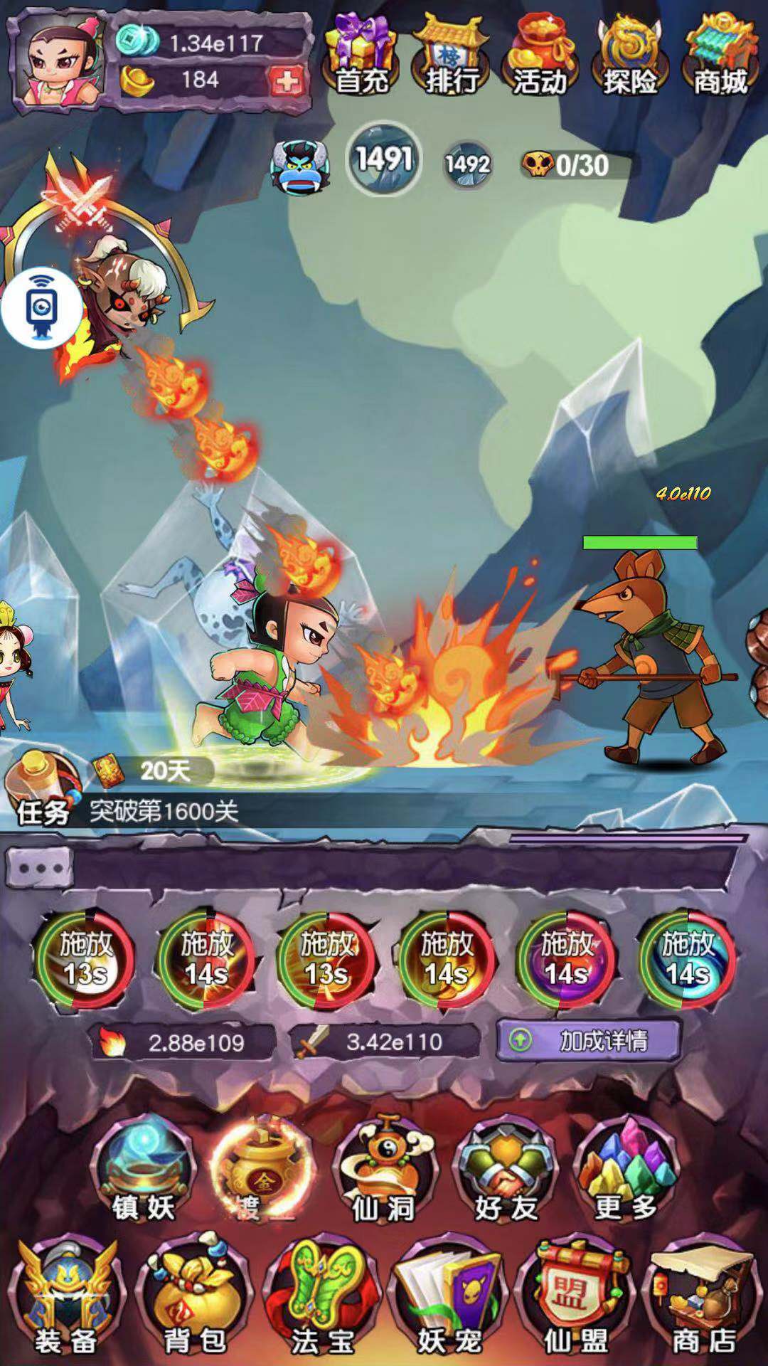 为什么要说到仙宠的攻击速度,打BOSS其实不是葫芦娃一个人的事情,很多时候仙宠也有百分之30的作用,普通玩家想要提高对BOSS级击杀速度,只需要使用两个手指拼命的点击屏幕即可极大的提高仙宠攻击速度,这样通关的概率就会上升。