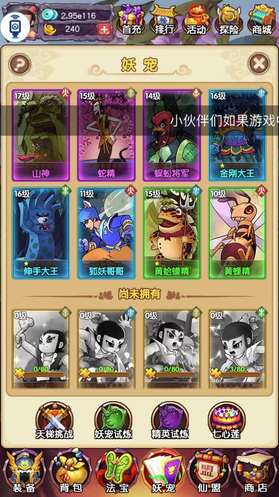这次小编为玩家们带来新葫芦娃妖宠和法宝怎么获得的详细攻略,妖宠和法宝是游戏中的两大支柱功能,妖宠基本负责了玩家除了通关之外的其他所有游戏内容,而法宝为玩家提供了大量的成长可能性。这次的攻略就从平民玩家和氪金玩家两个方向说一下妖宠和法宝如何获得。