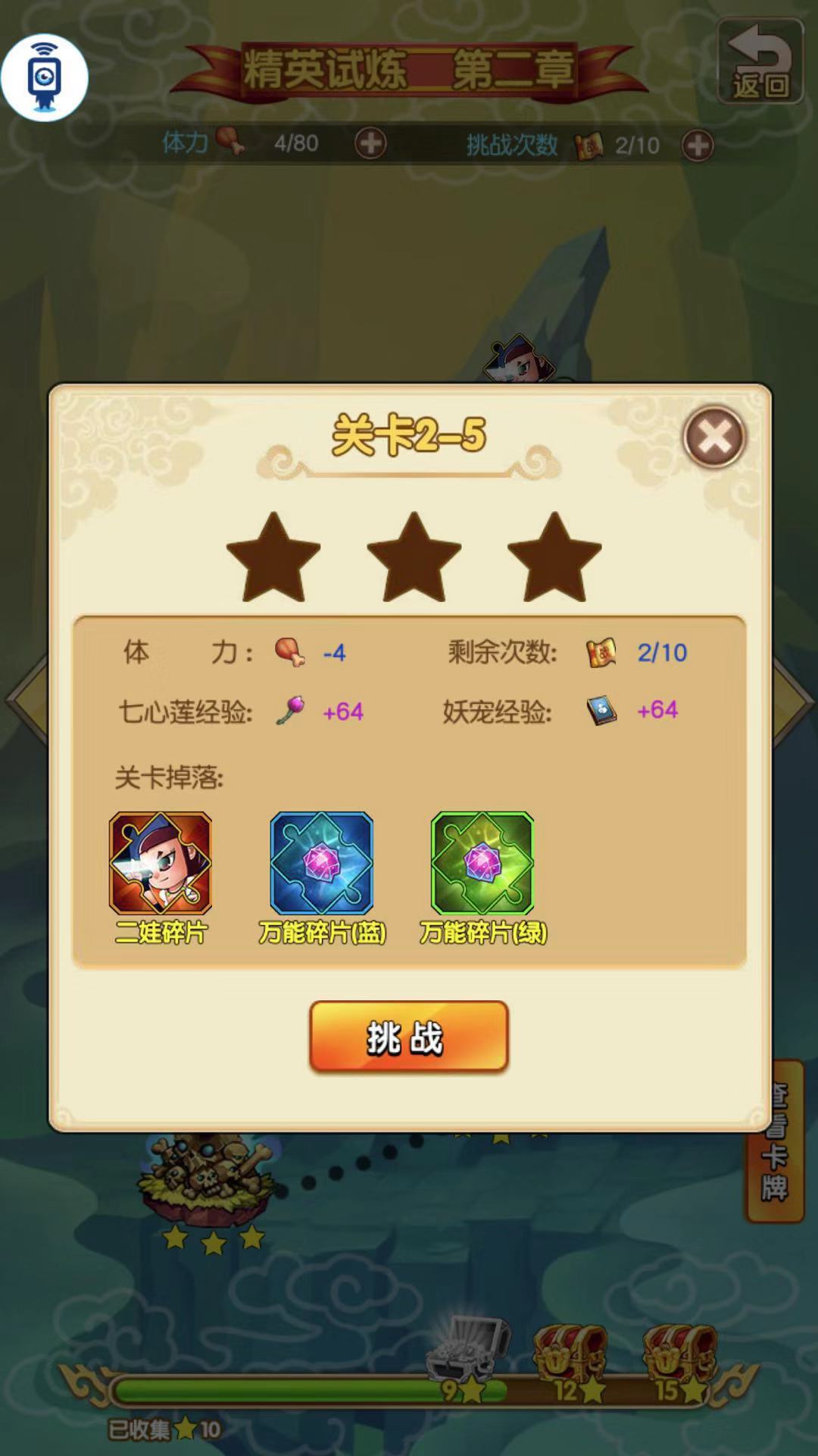 最后就是在各个试炼关卡刷妖宠了,普通的妖宠试炼最高刷到蓝色级别的妖宠,精英试炼最高刷橙色的妖宠,但是每天只有10张挑战券,这就导致很多玩家刷了几个月都没凑够80个橙卡碎片。