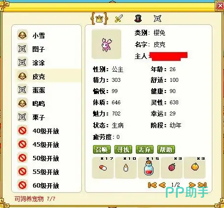 皮卡堂游戏玩家可以抓捕各种宠物进行培养,但是大家收养之后可以在上面就可以看见宠物的数值以及属性,本期为大家带来的是皮卡堂宠物生病怎么治的相关内容,如果玩家看到自己喜欢的宠物生病的话,是可以通过本期的流程来为宠物治疗的。