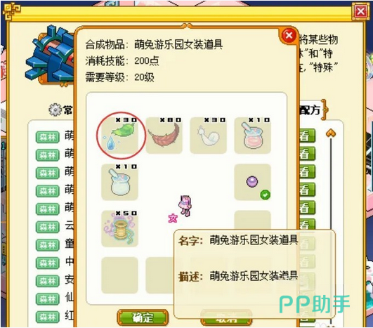 森林雨露这个材料是比较难找到的,玩家们一般都是要通过合成任务来获取到它。正常来说自己收集到的机率不大。但可以知道的是,我们只要去游戏红会中的萌兔游乐园做女装道具的合成任务,就能够得到30份玉露了。