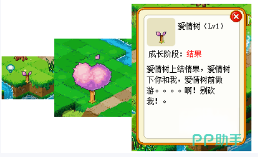 这里给大家介绍一种树,它的名字叫作爱情树。只要它慢慢长大,就会变成爱心的形状,后期还会结出情果。玩家们如果砍伐就能够得到情人枝。这个东西就可以用来合成森林野草莓幻影,非常实用。不过要合成的话,玩家们还得先学好技能,再准备好合成器。