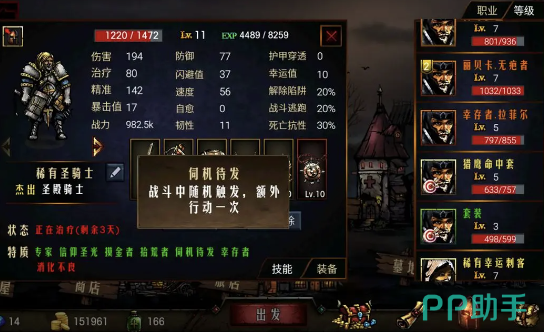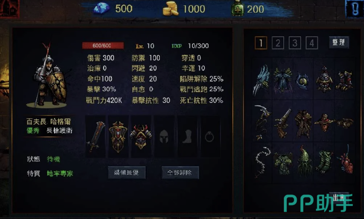 游戏主要玩法设置为地牢主题的生存模式,玩家在黑暗未知的世界可以不断探索,从而找到宝藏提升自己,这里建议新手玩家选择圣骑或者护卫,这两个角色对操作要求不高,但要注意每位英雄都有自己独特的个性,不好好照顾他们还会让他们染上恶习,严重的还会离队逃跑,在一路上玩家在通过实战提升他们能力的同时,还要照顾他们的情绪,人物能力在面板里都有相应的数值,可以直观的看到各种指标。