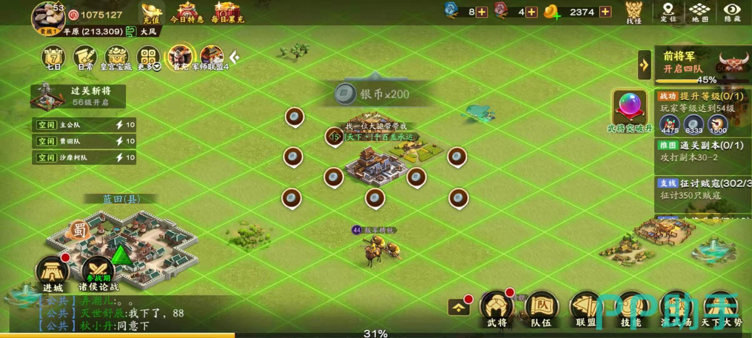 胡莱三国3中只要的土地类型有普通土地,高级土地和风水宝地三大类,其中普通土地是数量最多的,普通土地的城防值是10点,很容易就能打下来。作用是在占领之后,可以建造个人的主城建筑,还可以增加每小时200枚银币的产出,在普通土地上建造的个人建筑没有任何附加效果。