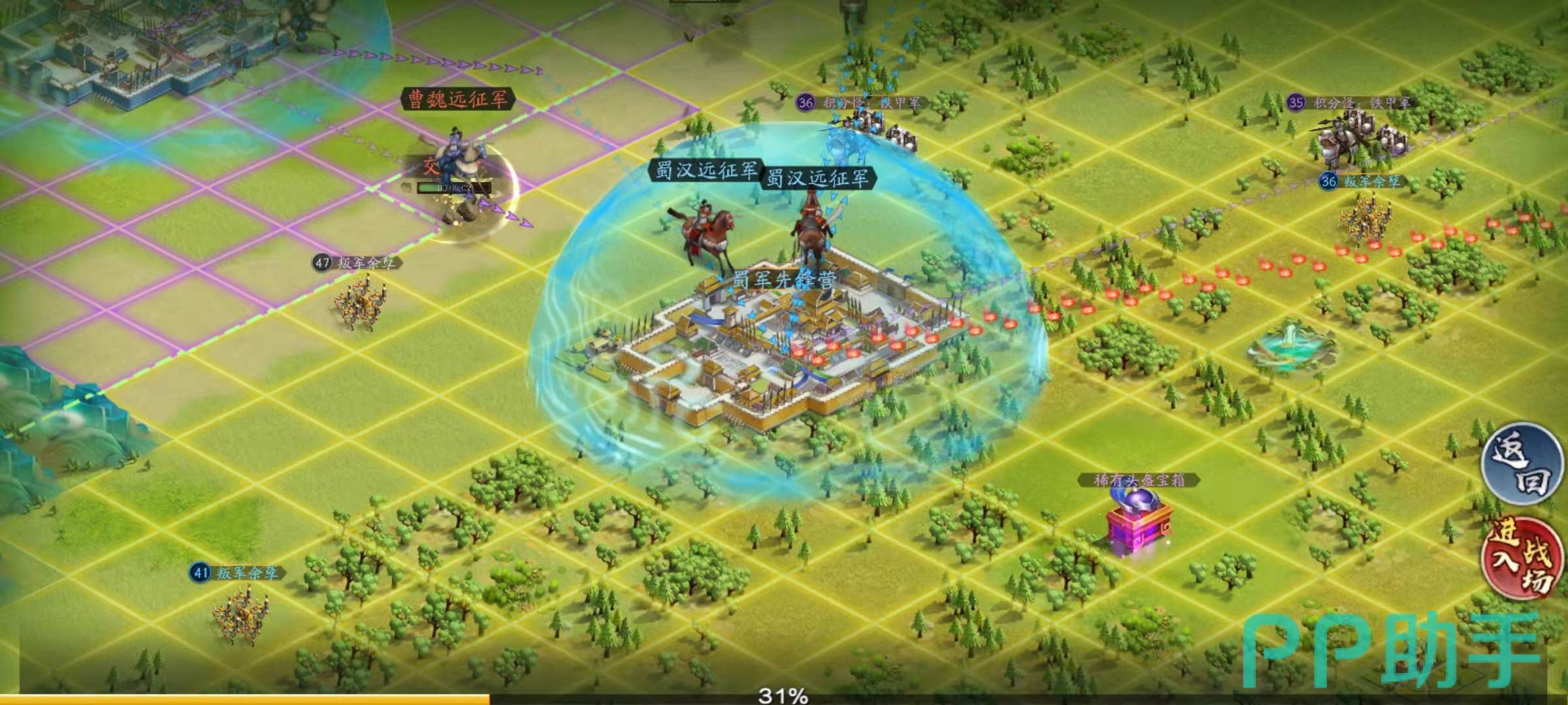 1、因地制宜,每种地形都有相应战法!胡莱三国3在打造真实战争环境方面,使用了“地形”杀手锏!游戏中有平原、水域、河流、山地、密林、沙漠等多种地形,除了平原之外,无论哪种地形对玩家的出征部队都有负面效应,而每种地形对应的多种战法,可以无视这些负面效应,甚至还能提升出征部队的属性,比如:飞将战法可在平原地形提升移速;艨艟战法可无视水域地形的负面效果,并提高生命值;破浪战法可在河流区域战斗时提升攻击和暴击属性;落石战法在山地区域进行落石操作;穿林战法可无视密林区域的负面效果,且在战斗时提升对敌人造成的伤害;踏沙战法可无视沙漠区域的负面效果,且在战斗时受到敌人的伤害降低。