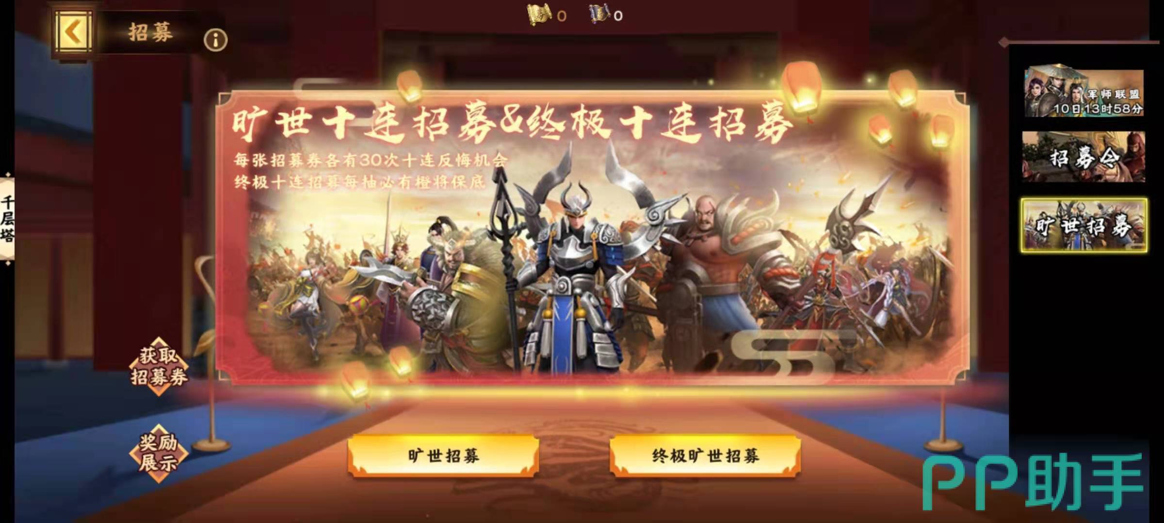 充值赠送指的是首充礼包中直接赠送橙色武将张飞,这也是玩家前期可以获得的最佳武将之一,必须重点培养。活动奖励指的是终极目标活动中的旷世十连招募和终极十连招募,完成各自的任务后可以获得旷世十连抽和终极十连抽,每次都可以保底获得一名橙色武将,而且可以反悔重选,一直到选中合适的武将为止。