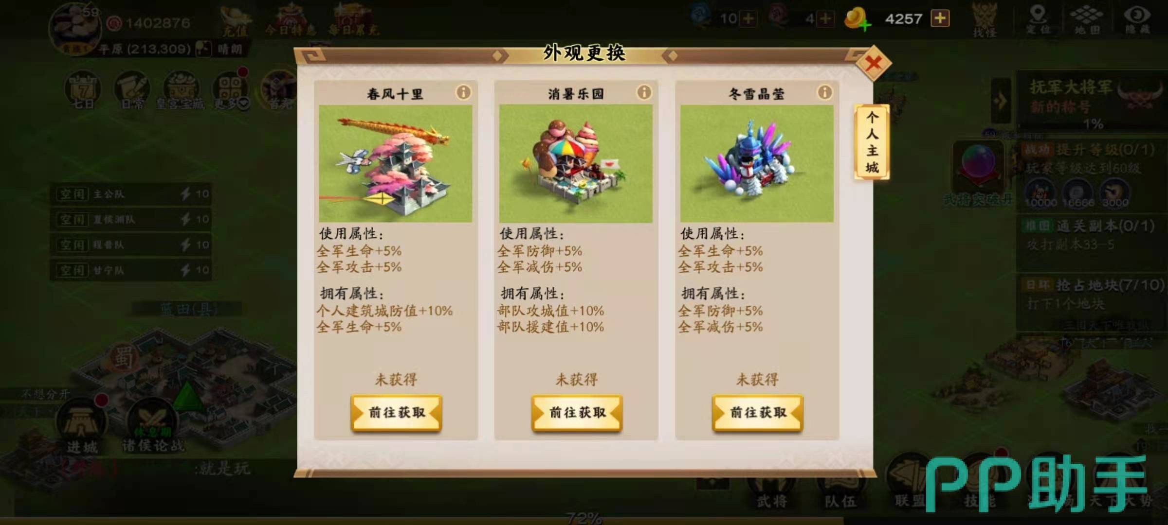 在胡莱三国3中,玩家可以建造自己的主城来增加实力,主城是可以改变城池的皮肤外观的,小编今天来给大家讲讲胡莱三国3如何免费得皮肤。城池的皮肤不仅可以达到吸引目光的效果,还能得到更为实惠的属性加成,所以获得一件城池皮肤是玩家在游戏中必做的任务。