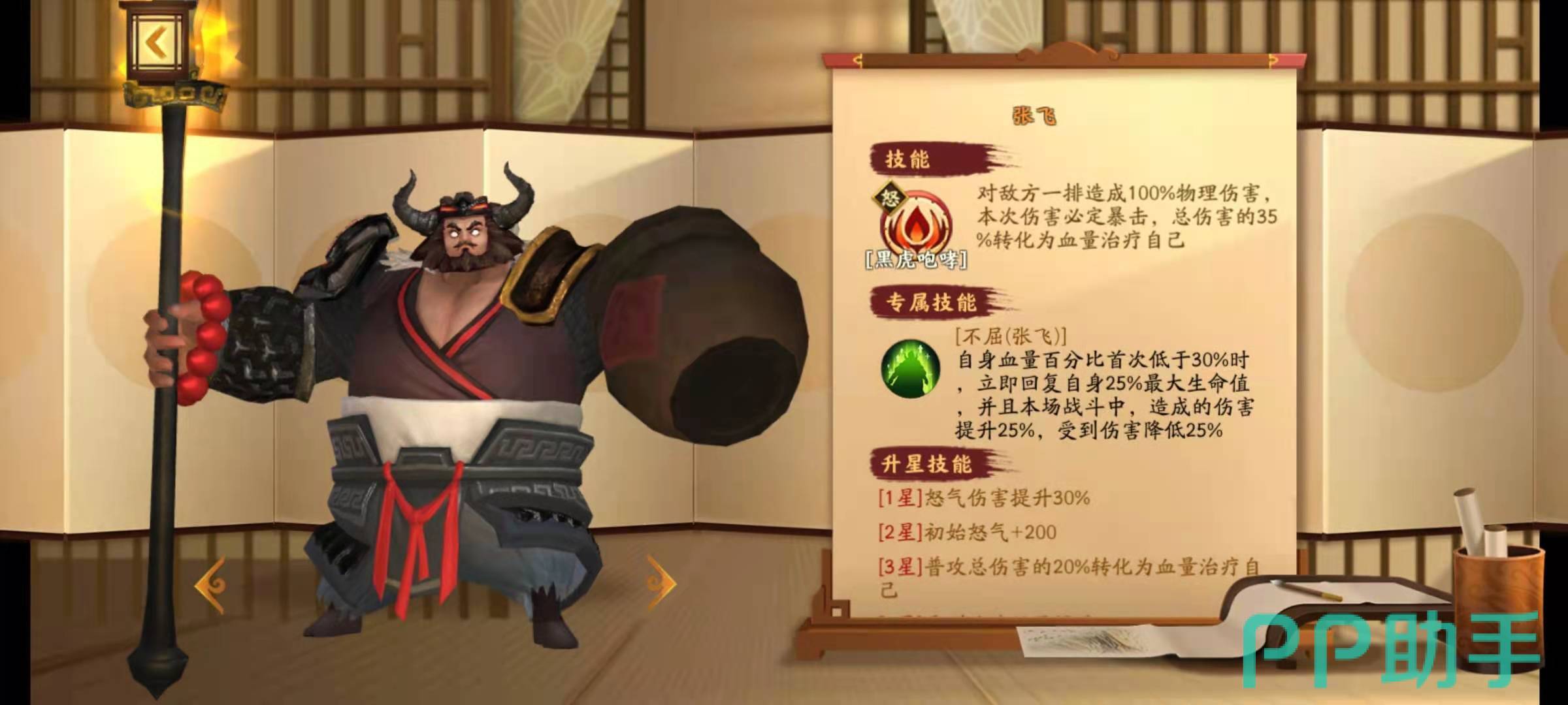 升到四星的时候可以获得回复能力,自身普通攻击伤害的30%可以转化为自己的血量,如果大招没有击杀目标,也可以回复35%的血量,这时候的关羽就是一个打不死的小强,即使队伍里没有治疗,关羽自身也能回血。升到五星的时候可以获得伤害累计能力,每击杀一个敌方武将就能增加自身25%的伤害,可以一直叠加下去,所以五星关羽又被成为人头收割机。