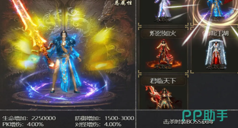 当然,所有的武器佩戴要求,都具备有一定的前置条件,那就是不能超过玩家当前角色的基础等级,在游戏内,也有一些限定的时装,是可以通过击杀boss来获取的,在这些时装被玩家佩戴时,可以增加基础生命数值,亦或是防御数值等等,不止如此,游戏内的时装也能够增加玩家pvp的伤害。