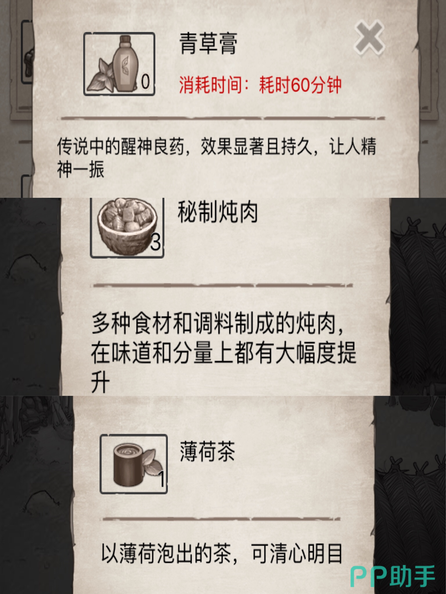 在触发时还需要准备对应的东西,如果是0.5~1需要三个珍珠,1~1.5需要两个汤剂,1.5~2要两个薄荷茶,2~2.5要两个珍珠,2.5~3要4个薄荷茶。
