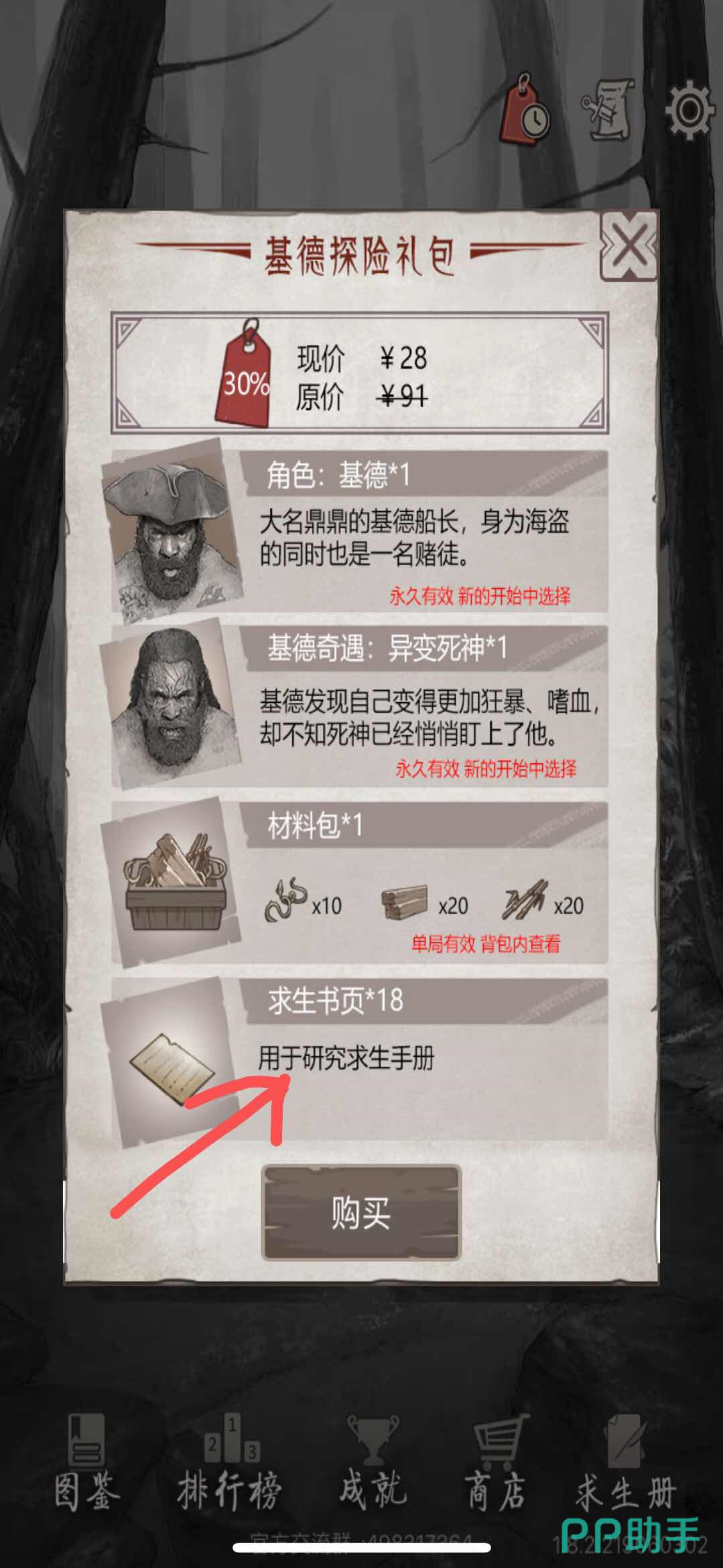 一般来说这个都是一类礼包,会含有角色+材料包+求生页。购买就能够直接得到大量的求生页。